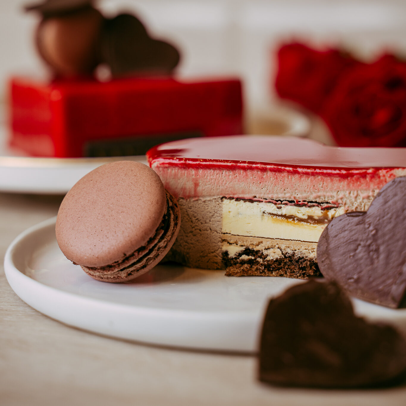 • Cuore Sale Nero di Cipro: un classico intramontabile per il giorno più romantico dell’anno. Bavarese al cioccolato al latte con un cuore di crema al mascarpone, rivestita da una dolce caramella mou, spolverata con sale nero di Cipro, tutto su un soffice pan di Spagna al cacao. Un connubio perfetto di dolcezza e intensità.